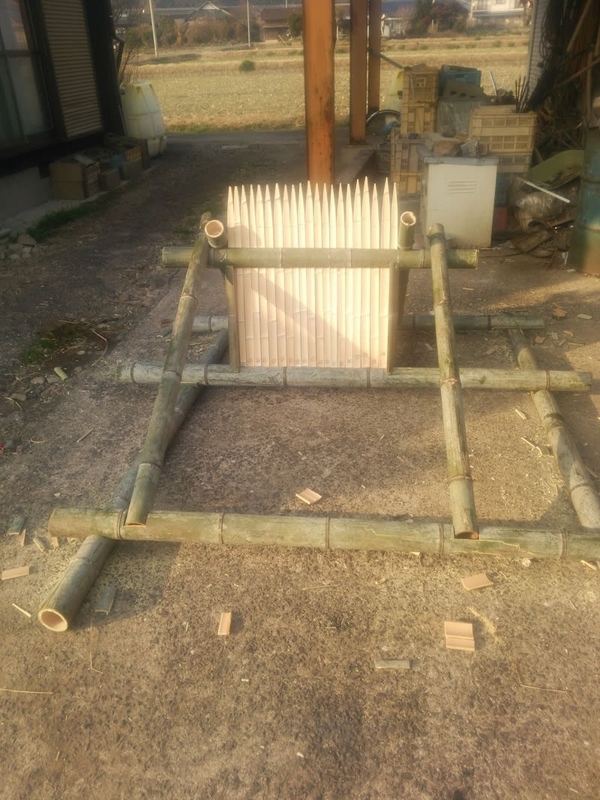 本来ならば金属や木材で作るところでしょうが、身近にあって、かつタダで手に入るものを活用するということで竹を利用しました。ですから材料代は針金が1メートル程をあり合わせのものですので限りなくゼロ円です。
