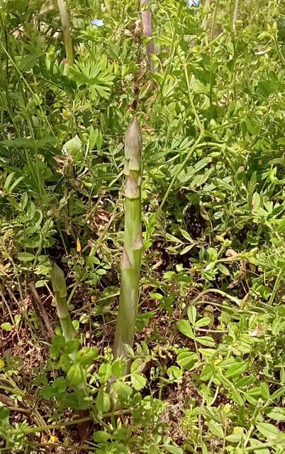 採れたてのアスパラガスは甘みがあって瑞々しく誠に美味であります。現在収穫できるのは一株のみですので少し物足りないので来年が楽しみです。
