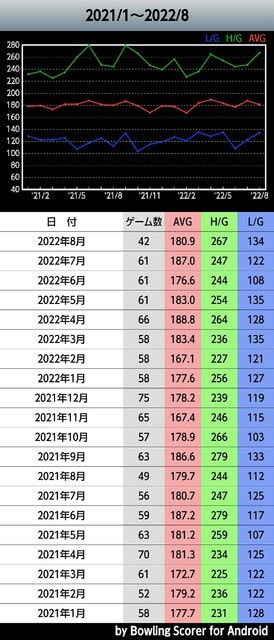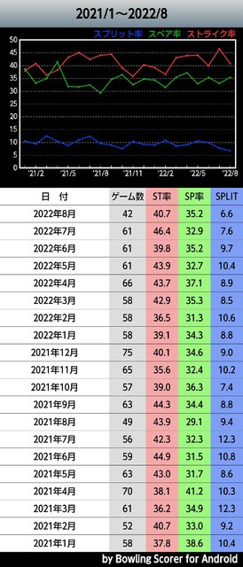 と明らかに数値が悪くなっております。しかも、スコアの低下はスペアのコントロールが悪くなったことが主因だと思っていただけに、ノーヘッド率の上昇はショックでした。これもグラフ化はしていないもののデータを残しておいたお陰だと思っております。