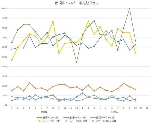87.09⇒73.07⇒72.72⇒76.92⇒57.14⇒80.00⇒100.00(6/6)⇒66.66と大幅ダウンしてしまいました。